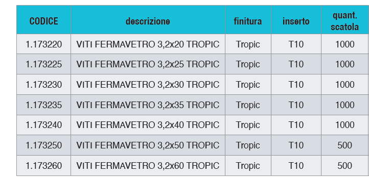 Vite fermavetro Torx 10 autoperforante tropicalizzata