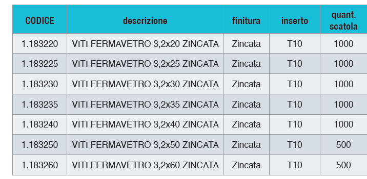 Vite per fermavetro autoperforante a testa piana svasata ridotta.