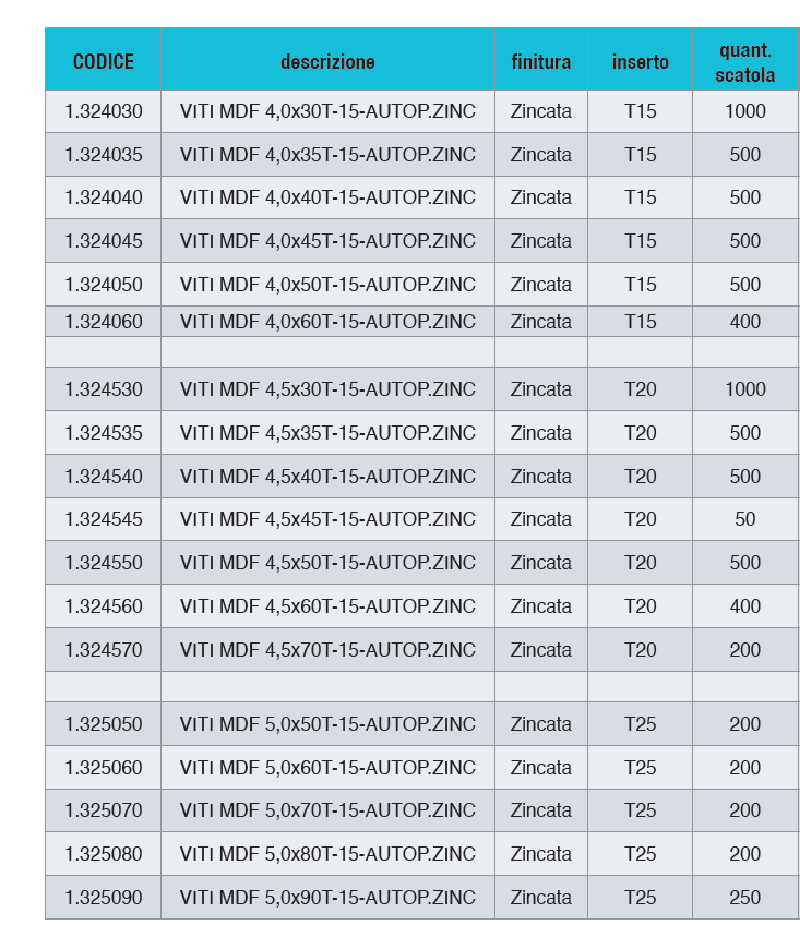 Altri prodotti della serie Viteria per legno