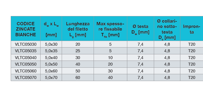 Diametro 5 mm - TX 20 Per giunzioni di piastre ed angolari e per fissaggi con resa estetica.